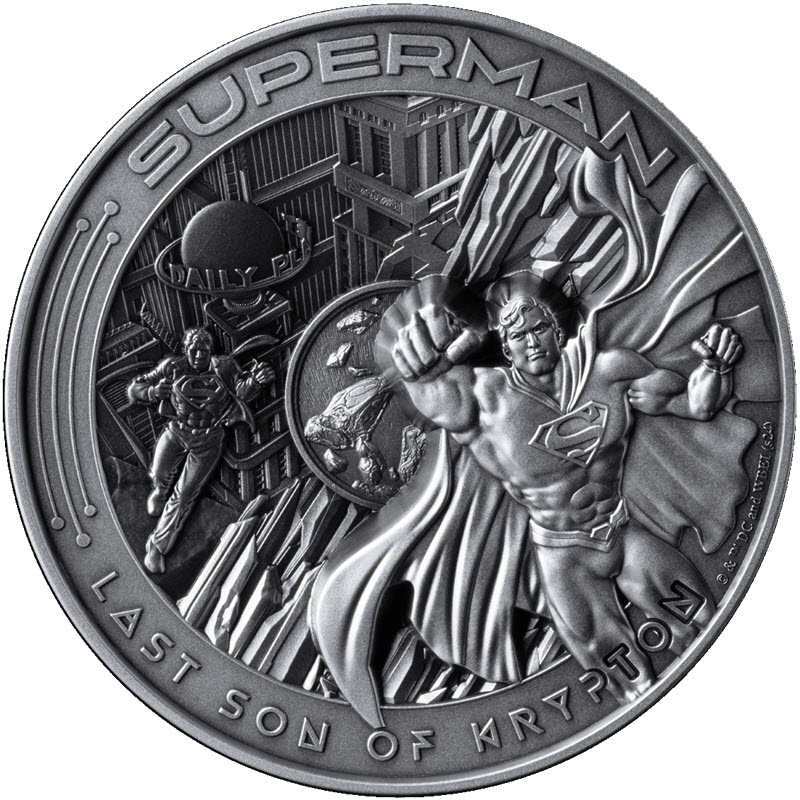 Эта чудесная серебряная монета посвящена величайшему супергерою всех времен: Супермену из вселенной DC Comic. У нее качество антик, отчеканена с использованием многослойной техники и является официально лицензированным продуктом. Поставляется в оригинальном футляре с сертификатом подлинности. Тираж: 250 штук.