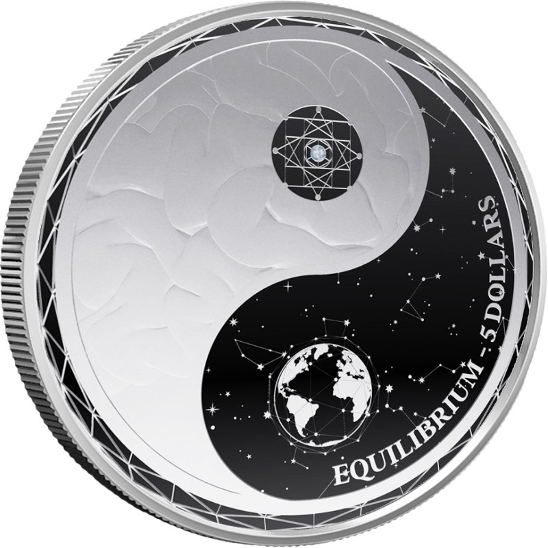 Эта чудесная серебряная монета Прессбургского монетного двора посвящена балансу между двумя противоположными силами - Инь и Ян.