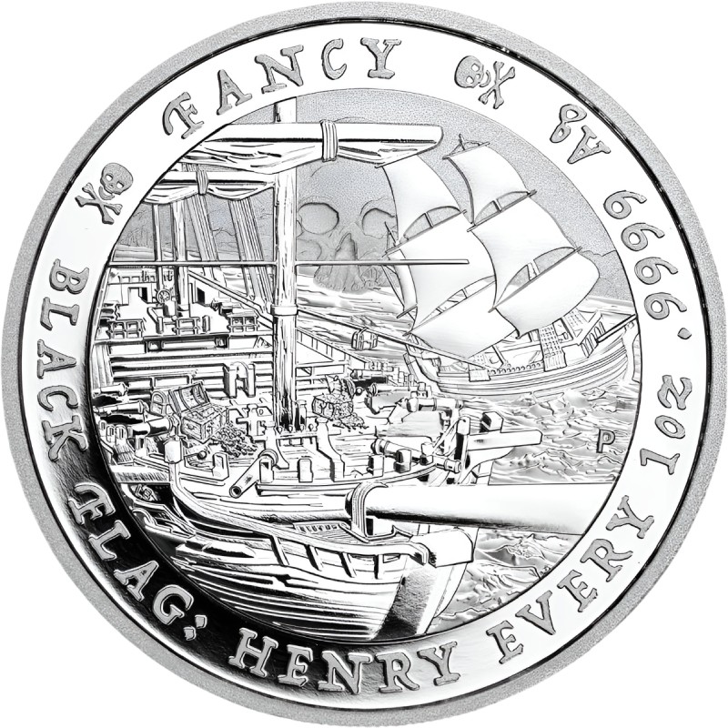 Эта серебряная монета весом в 1 унцию – пятая из серии «Черный флаг» - посвящена пиратскому кораблю Fancy. У нее качество BU. Тираж: 15000 штук.