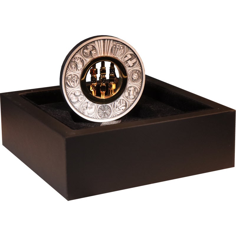 Эта удивительная серебряная монета весом в 2 унции посвящена играм - одной из самых древних форм социального взаимодействия. У нее качество античной отделки, дизайн с интерактивными деталями с выборочным золочением. Поставляется в оригинальном футляре с сертификатом подлинности. Тираж: 2500 штук.