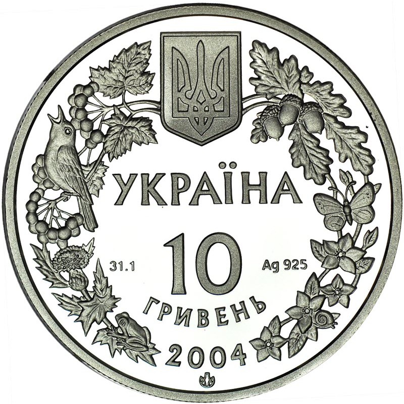 На аверсе изображен растительный орнамент. Вверху малый герб Украины. Ниже надпись: УКРАЇНА 31.1 AG 925 10 ГРИВЕНЬ 2004 (страна-эмитент, вес и проба серебра, номинал, год чеканки).