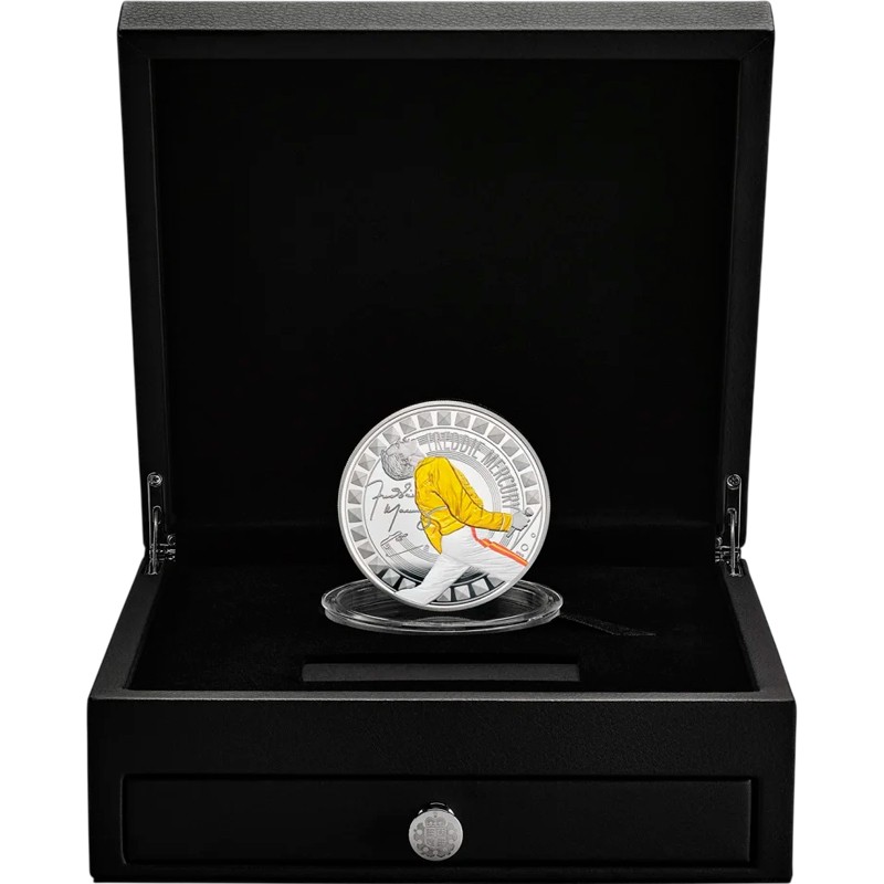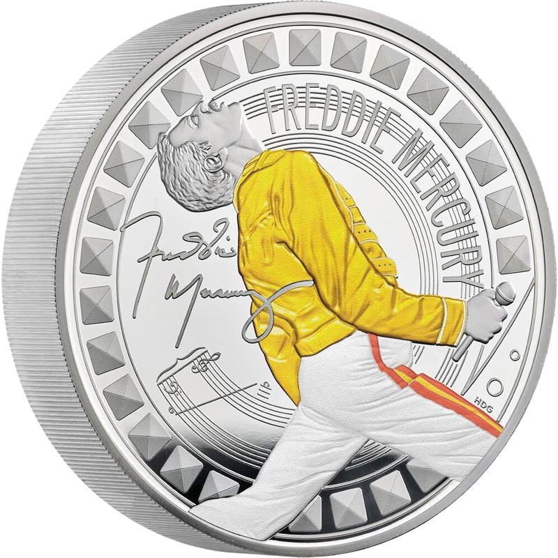 Эта очаровательная серебряная монета является новым выпуском серии «Легенды музыки» и посвящена Фредди Меркьюри.
