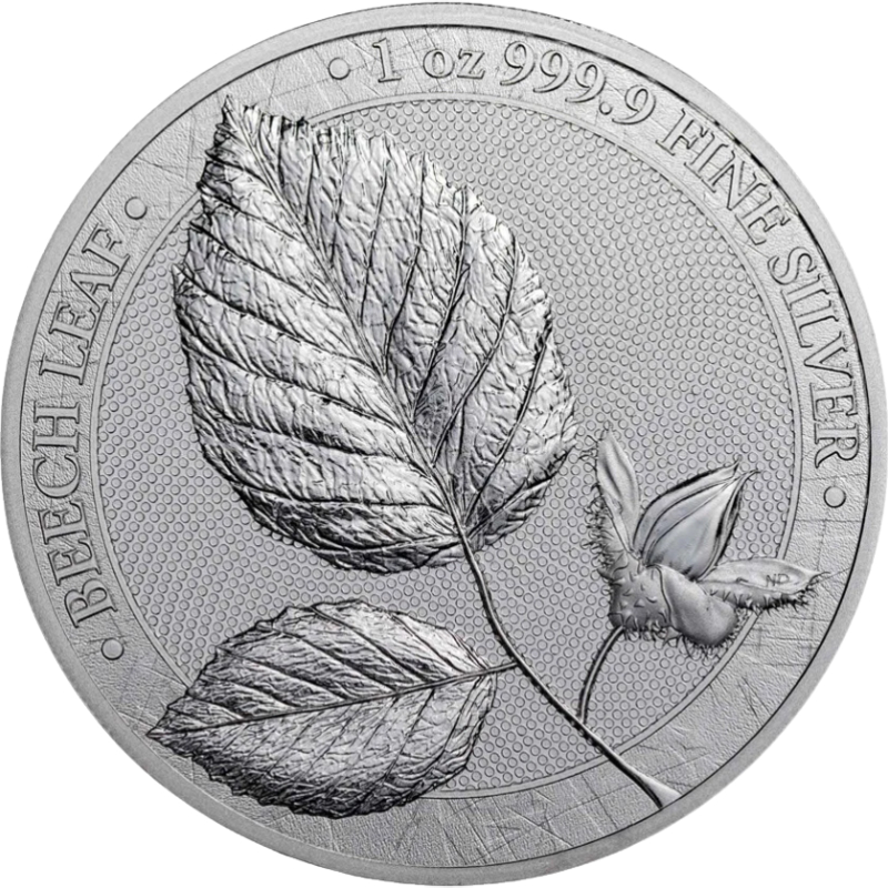 Серебряный жетон Германии "Лист бука" 2023 г.в., 31.1 г чистого серебра (проба 9999)
