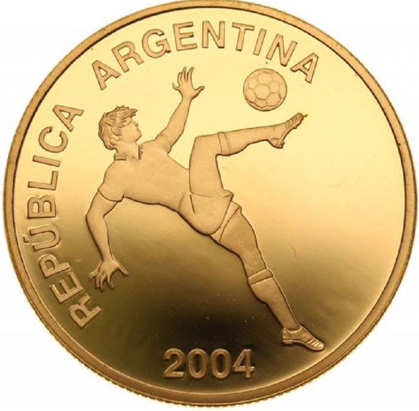 Золотая монета, выпущенная к XVIII Чемпионату мира по футболу.
