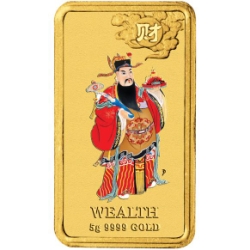 В верхней части реверса монеты помещен соответствующий иероглиф, обозначающий на китайском языке «богатство». По центру реверса находится цветное изображение соответствующего мифологического персонажа-божества. В нижней части указано название символа на английском языке - "WEALTH", вес монеты и драгоценный металл.