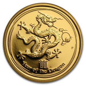 Золотая монета из серии "Лунный календарь" - год Дракона выпущена Пертским монетным двором в 2012 году. Ограниченный тираж.