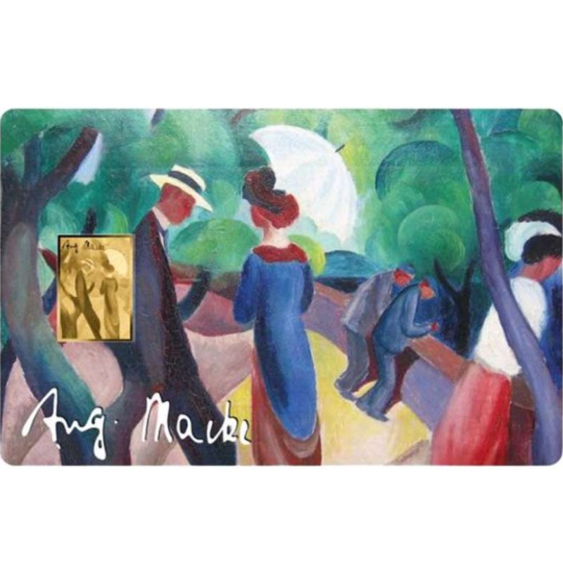 Эта потрясающая золотая монета весом 1/1000 унции посвящена картинам Августа Маке. У нее размеры 11 Х 15.4 мм и качество пруф-лайк. Поставляется в карточке с сертификатом подлинности. Тираж: 50 000 штук.