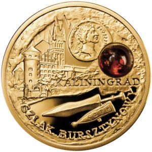 На реверсе сверху, вдоль края – надпись: KALININGRAD  (название русского города – пункт Янтарного пути). Под ней  - стилизованное изображение пугио – маленького кинжала, использовавшегося римлянами. Выше надписи – стилизованное изображение Замка Кёнингсберг. Рядом с замком, справа – стилизованное изображение монеты,  которой расплачивались за янтарь в те времена. Под изображением монеты, справа – янтарная вставка. В основании, вдоль края – полукруглая надпись на польском: SZLAK BURSZTYNOWY (Янтарный путь).