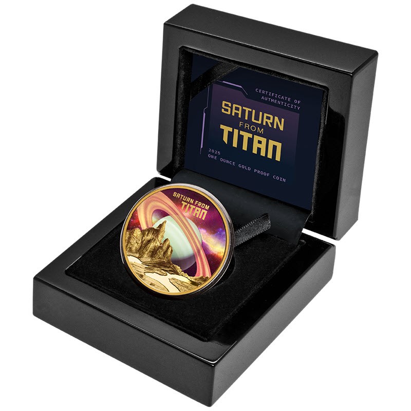 Золотая монета Ниуэ "Сатурн с Титана" 2025 г.в. (пруф), 31.1 г чистого золота (проба 9999)