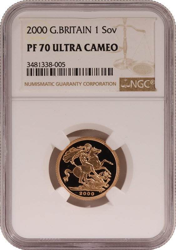 2000 год – Великобритания 1соверен. Пруф. Тираж: 16000 штук.