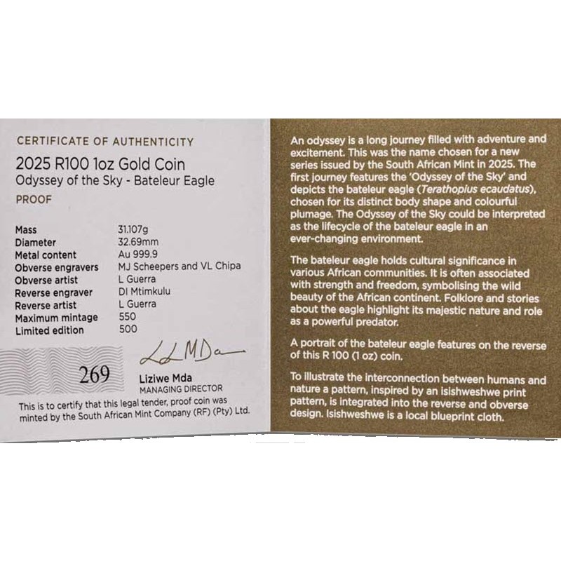 Серия «The Odyssey» знаменует начало целого художественного путешествия, где каждая последующая монета будет символизировать иной аспект природы — небо, землю, воду и дух. «Bateleur Eagle» открывает этот путь как воплощение свободы, мужества и стремления к высоте.