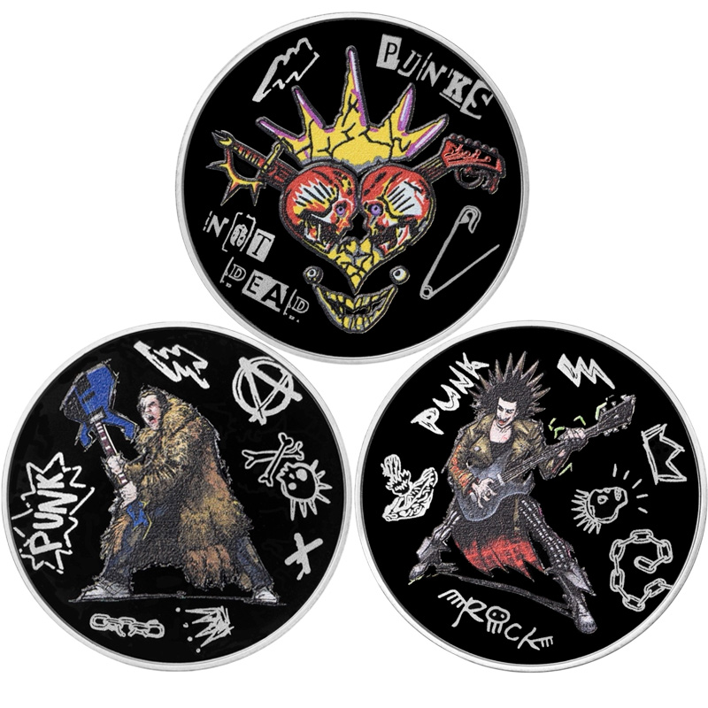 В центре реверса третьего жетона – логотип фильма: скрещенные меч и гитара с двумя черепами, короной и улыбкой шута, выполненные в красно-жёлтых оттенках. Черепа на логотипе обращены друг к другу лбами тем самым образуя форму сердца. Вверху и внизу надписи: PUNKS NOT DEAD (Панк жив) - лозунг панк-культуры.