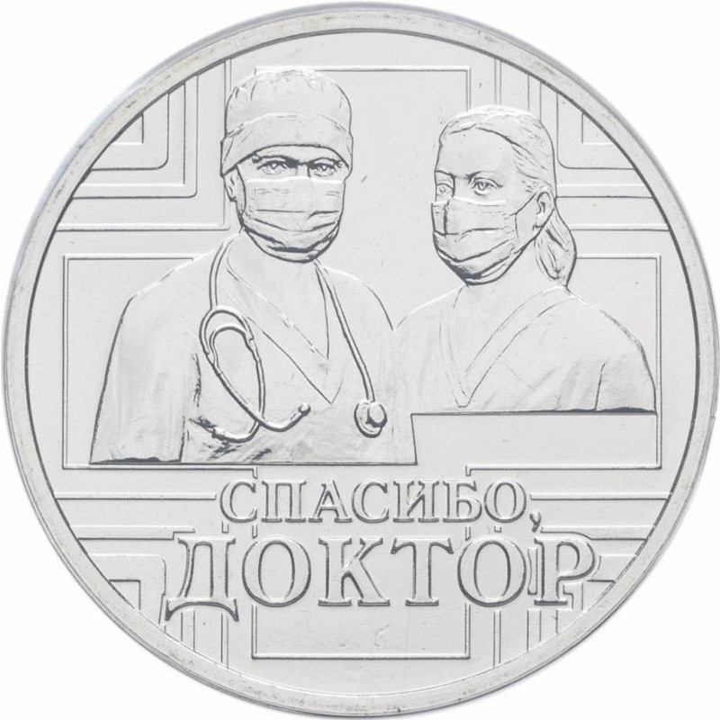 На реверсе изображены медицинские работники. Внизу надпись: СПАСИБО, ДОКТОР.