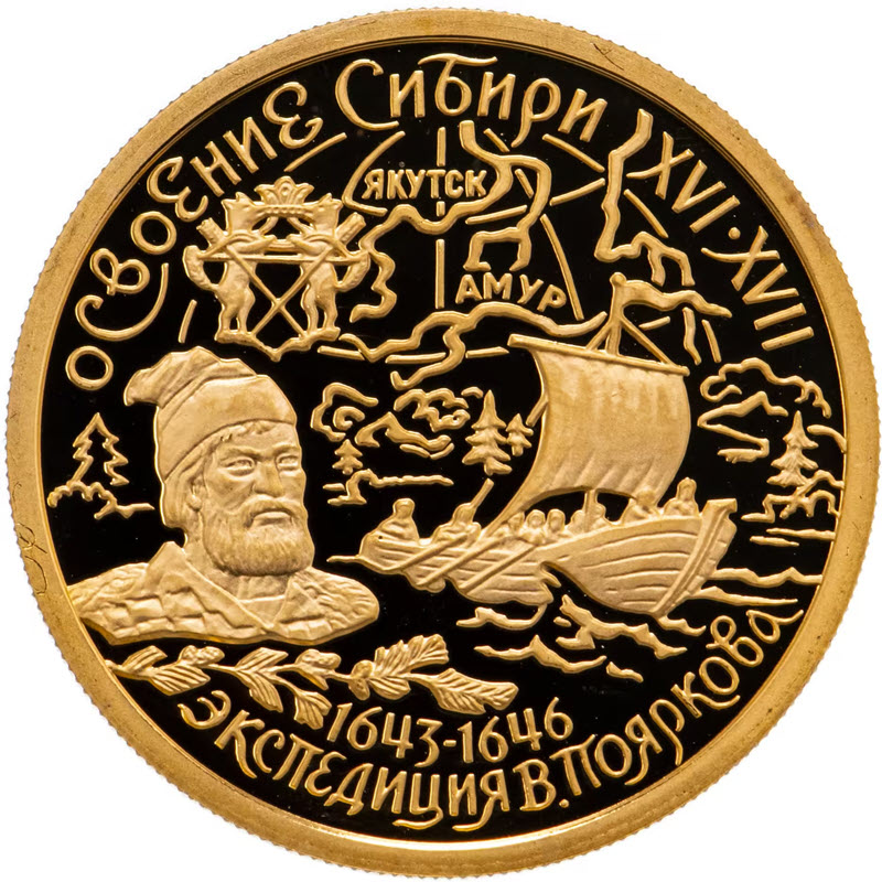 Золотая монета Банка России географической серии «Освоение и исследование Сибири, XVI-XVII вв».