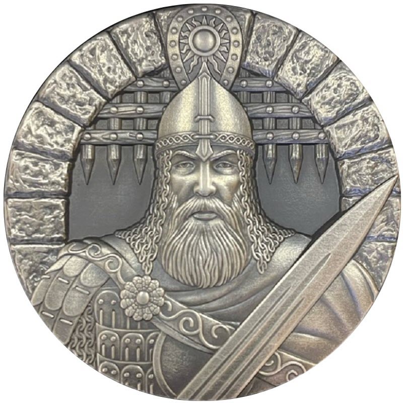 Серебряный жетон, весом 2 тройские унции (62.2 грамм), выпущенный к 200-летию выхода поэмы А.С. Пушкина «Песнь о Вещем Олеге». Идею написания поэмы Александр Сергеевич заимствовал из летописи «Повесть временных лет».